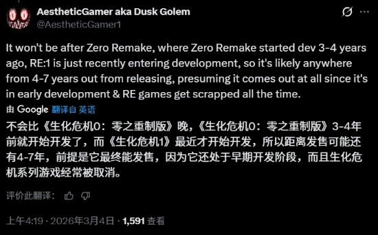 此外,據(jù)Dusk Golem稱,長期傳聞中的《生化危機(jī):代號(hào) 維羅妮卡》重制版將是下一款推出的《生化危機(jī)》作品,預(yù)計(jì)于2027年發(fā)售。隨后是《生化危機(jī)0》重制版,目標(biāo)發(fā)售時(shí)間為2028年。再往后,系列正統(tǒng)續(xù)作《生化危機(jī)10》可能會(huì)在《生化危機(jī)0》重制版之后推出。而《生化危機(jī)1》重制版則“最近才剛剛進(jìn)入制作階段”。