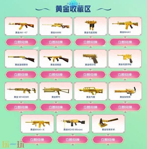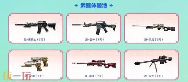 參與方法:使用自選軍火體驗(yàn)卡、自選30天黃金體驗(yàn)卡或永久黃金收藏卡即可在指定獎池內(nèi)自選心儀武器道具領(lǐng)取。