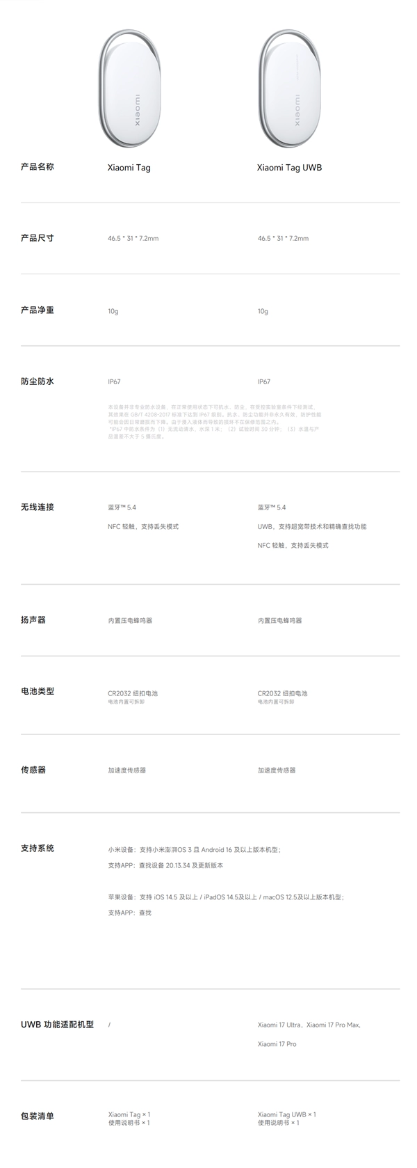 Xiaomi Tag國行版已由小米推出,BLE藍牙版本69元,UWB版本則為129元