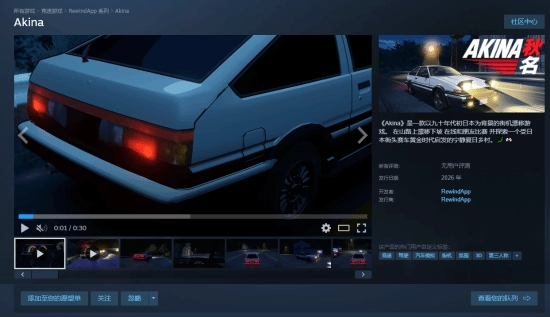 為什么突然免費(fèi)?因?yàn)殚_發(fā)商的新作《Akina》(設(shè)定在90年代日本的街機(jī)賽車)即將于2026年初發(fā)售。這波送前作,可能是為了給新作攢人氣。