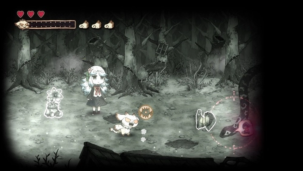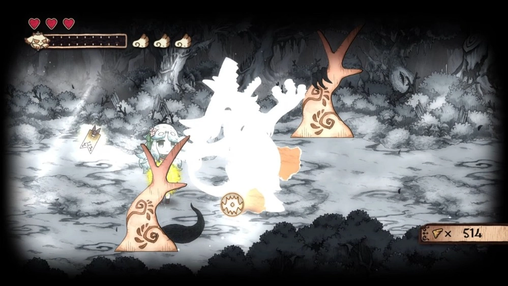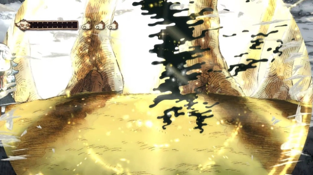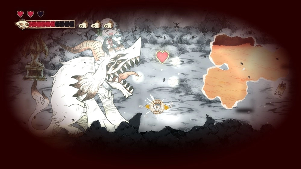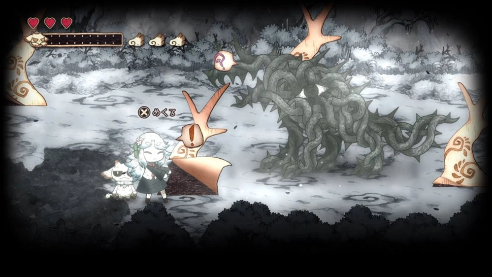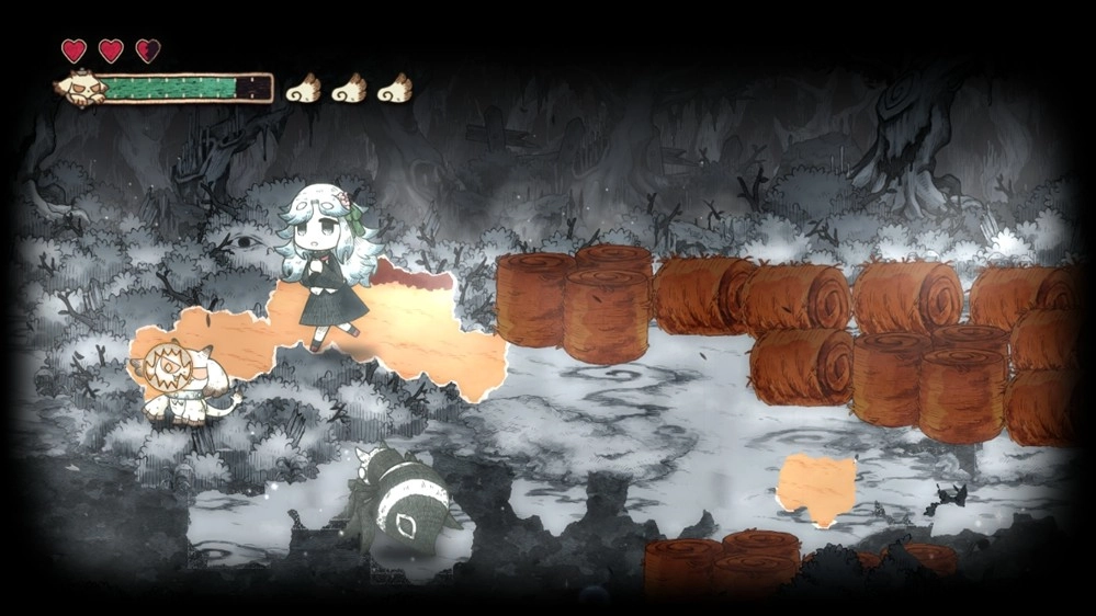 不只擋路的紙怪物,就連行進方向上的礙事巖石、樹木與死路,甚至是怪物傳來的訊息也能對付!?凡是以黑白描繪的事物,全都能被吞食并破壞!