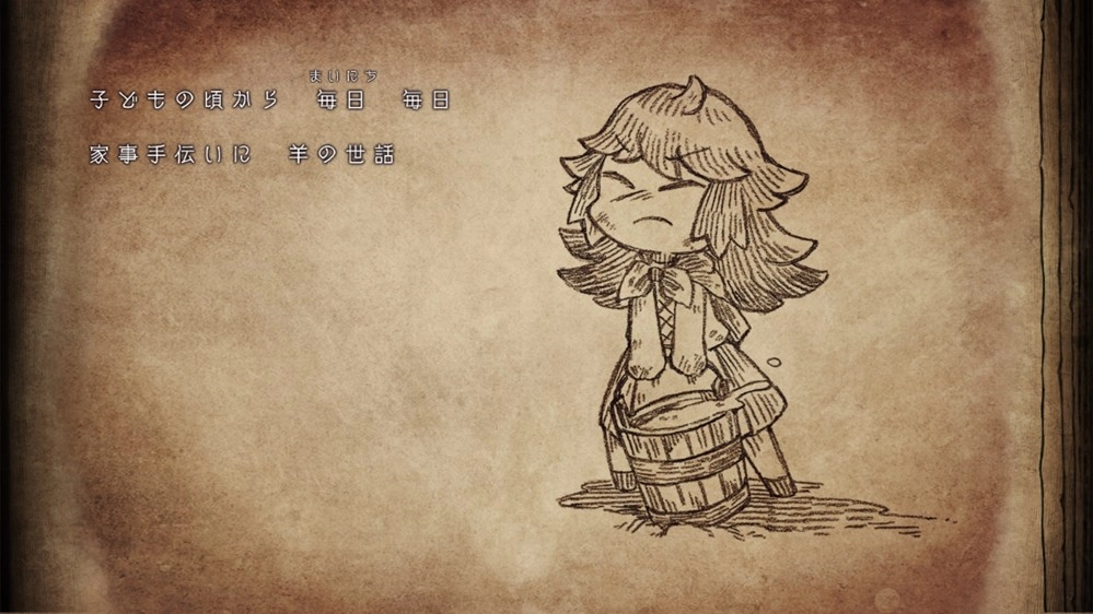 作為牧羊人家的長女出生,是個為家人著想、勤勉不懈的少女。雖然家境貧困,但努力工作,過著幸福的生活。