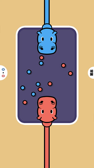 點擊屏幕可以操控河馬吃掉小球,當(dāng)玩家吃到自己顏色小球時可以獲得2分,吃到對手顏色小球時就會扣除1分,先得到80分的玩家獲勝