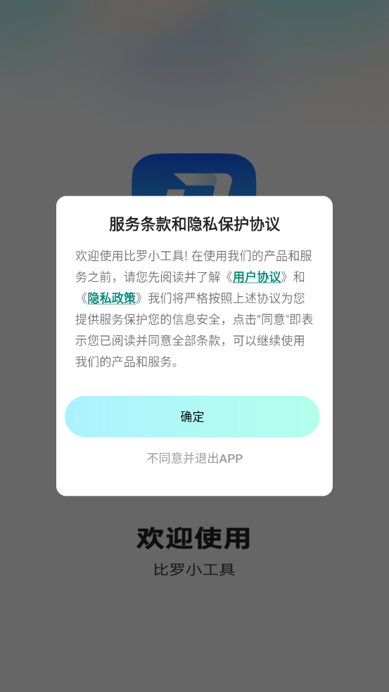 1、安裝好比羅小工具,查看并同意相關(guān)政策與協(xié)議。
