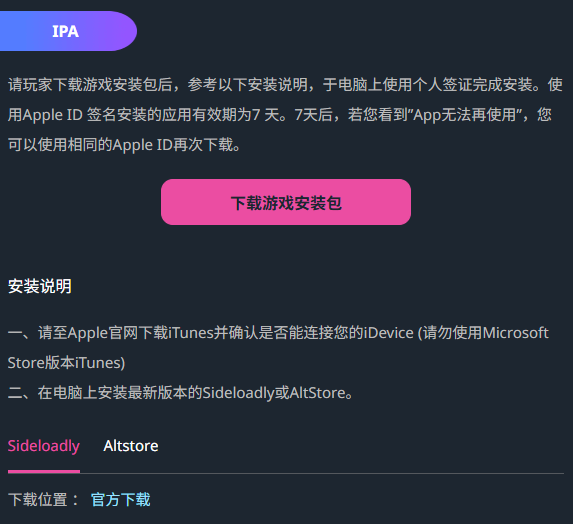 玩家下載游戲安裝包后,可參照以下安裝說明,在電腦上通過個(gè)人簽證完成安裝流程。需要注意的是,用Apple ID簽名安裝的應(yīng)用,其有效期為7天。