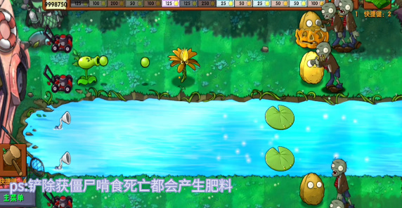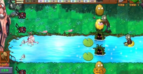 通關(guān)技巧:把游戲難度設(shè)置得低一些,進(jìn)入游戲后,先在前方位置種上高堅(jiān)果,之后再逐步融合植物1。