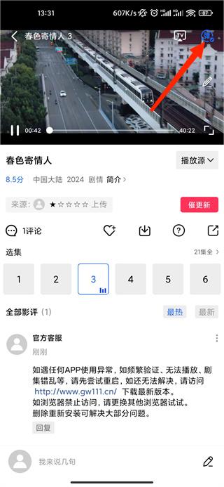 1在播放界面,點(diǎn)擊位于右上角的彈幕開關(guān);
