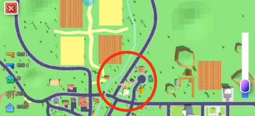 1、沙雕模擬器中馬特的電池隱藏在超市里面,西瓜標(biāo)志的建筑就是超市。