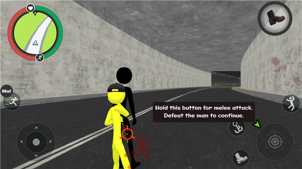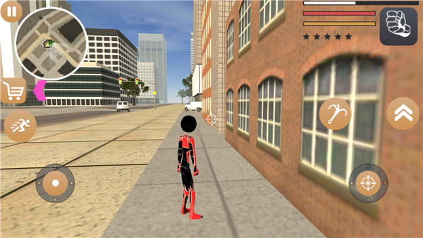 左側(cè)控制移動(dòng)和加速,右側(cè)負(fù)責(zé)繩索使用、攻擊(包括跳躍),而右上角則顯示武器更換以及血量和經(jīng)驗(yàn)值的實(shí)時(shí)更新,一切信息盡收眼底。玩家可以自由發(fā)揮,與不同幫派的角色進(jìn)行對(duì)抗,在此過(guò)程中通過(guò)擊殺敵人獲得經(jīng)驗(yàn)值,隨著擊殺數(shù)量增加,你會(huì)累積星級(jí)。此時(shí),警察及其他附近的NPC會(huì)特別關(guān)注你,并對(duì)你發(fā)起猛烈攻擊。你的任務(wù)是如何在這樣的環(huán)境中生存下來(lái),并成功擊敗其他角色。