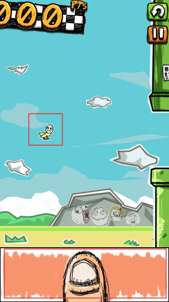 2、持續(xù)點擊保持小鳥平穩(wěn),穿越障礙,碰到障礙則游戲失敗,需重新開始挑戰(zhàn)。