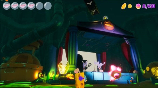 至于缺點(diǎn),我的第一印象是難度偏低,不過幸好在小游戲與 Boss 戰(zhàn)中看到有花點(diǎn)心思。例如片場會(huì)變成橫向動(dòng)作,你要跟隨鏡頭的移動(dòng);面對燈籠魚則變成躲貓貓游戲等。而在與珊迪的 Boss 一戰(zhàn)中,要思考如何把她在大車輪中打下來,這些設(shè)計(jì)為簡單的戰(zhàn)斗系統(tǒng)挽回不少分?jǐn)?shù)。