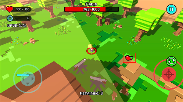 游戲中玩家需要通過滑動左下角的搖桿來進行移動,通過滑動右下角的按鈕來進行攻擊,滑動的方向就是射擊的方向,游戲中擊敗僵尸還會掉落道具,道具可以幫助玩家快速通關,玩家的目的就是需要守護家,游戲上方的是家的血條。像素射擊僵尸戰(zhàn)場游戲左上方是玩家的血條,玩家闖關時需要注意血條的多少,游戲左上角還有僵尸攻擊的次數(shù),抵御了僵尸的攻擊即可通關,每抵御一次僵尸的攻擊,玩家都可以對家附近建造防御,成功抵御僵尸的攻擊即可通關,通關后游戲還會為玩家發(fā)放豐富的獎勵。還在等什么,有興趣的玩家快來像素射擊僵尸戰(zhàn)場游戲進行闖關吧!