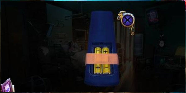 3、用完振顫器,接下來(lái)點(diǎn)擊墻上的時(shí)鐘,取下電池,然后點(diǎn)擊桌子,拿到劇情本和遙控器,還有關(guān)燈。