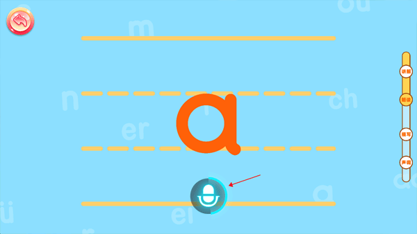3、朗讀拼音a,只要按住中間的麥克風(fēng)圖標(biāo)朗讀就可以了,如果讀完了就松手。