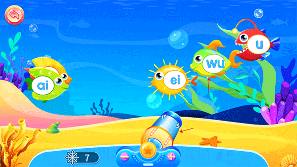 6例如,在快樂捕魚游戲中,只需用捕魚網(wǎng)捕捉到帶有正確拼音的小魚就能獲勝,非常有趣。