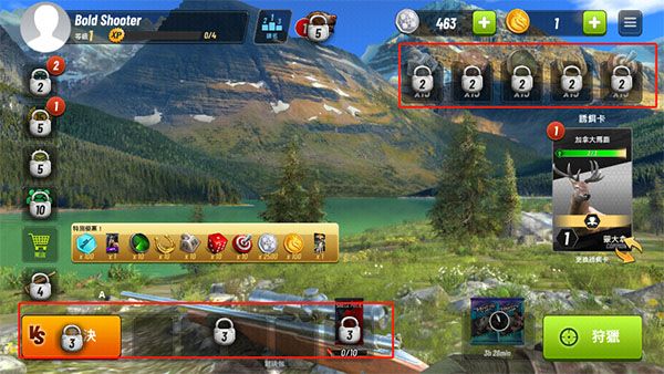狩獵是每個(gè)獵人的生存之道。但你的游戲目標(biāo)僅僅是射殺動(dòng)物而已嗎?當(dāng)然不是,每天還有大量活動(dòng)等待你的參與!你可得好好展現(xiàn)你的追蹤和瞄準(zhǔn)技巧,就像在頂級(jí)射擊和狩獵大賽里一樣!狩獵指定獵物,如鹿,或在指定地點(diǎn)狩獵,如非洲、美國(guó)和俄羅斯等等。達(dá)成目標(biāo),提升獵手等級(jí)!