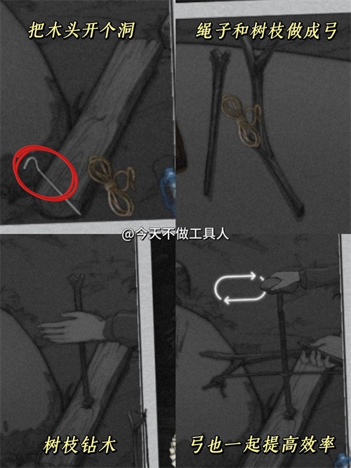 ③直樹(shù)枝和弓狀物配合鉆火