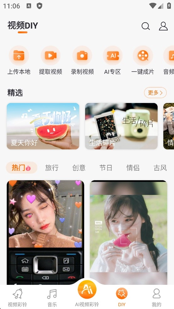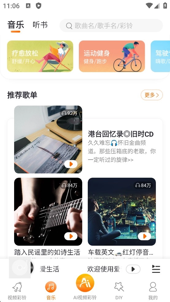 愛音樂彩鈴擁有超150萬首正版歌曲,流行、電子、民謠、爵士、戲曲、HipHop等各類風格一應俱全。隨時隨地想聽就聽,便捷無比,還能當作本地播放器,支持在線與離線兩種收聽方式。愛音樂彩鈴為用戶提供視頻彩鈴服務,明星片段、風景畫面、熱門BGM隨心切換,更能自行DIY制作彩鈴,玩法豐富趣味十足。同時也支持普通音頻彩鈴,讓來電瞬間別具一格。
