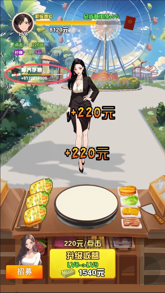 2、點(diǎn)擊出門,通過(guò)制作煎餅來(lái)賺錢。