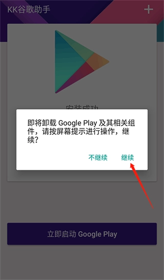 1、啟動(dòng)"Kk谷歌助手",并根據(jù)提示一鍵安裝Google Play四件套。