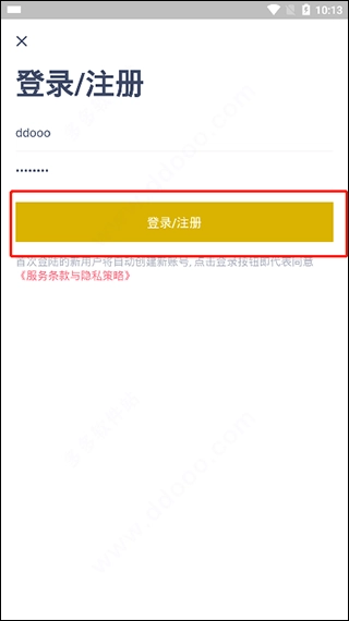 3、這時(shí)就會(huì)到“登錄/注冊(cè)”界面,輸入你的賬號(hào)密碼即可進(jìn)行登錄,同時(shí)就算你是首次登陸的新用戶也會(huì)自動(dòng)根據(jù)你輸入的創(chuàng)建新賬號(hào);
