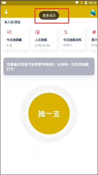 3、同時(shí)當(dāng)你抽煙了后長(zhǎng)按主界面按鈕就會(huì)為你進(jìn)行記錄。