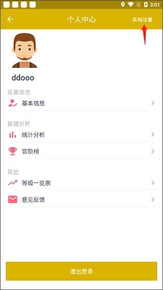 1、點(diǎn)擊右上角的按鈕到“個(gè)人中心”可先設(shè)置自己的基本信息,從而即可更好的幫助你進(jìn)行統(tǒng)計(jì);