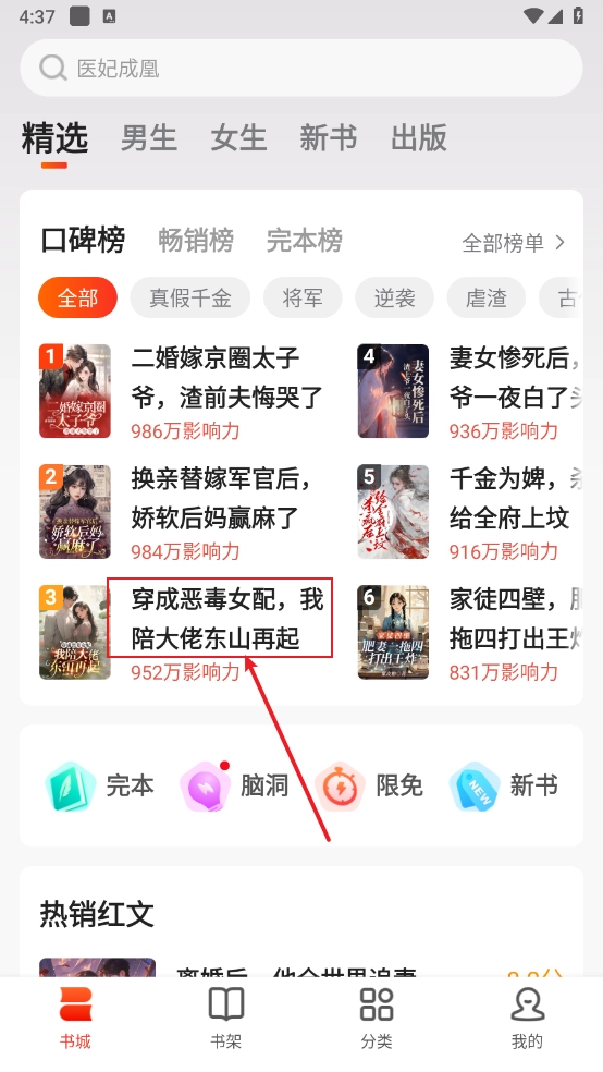 1. 開啟軟件,于“書城”板塊里挑選心儀的小說并進(jìn)入。