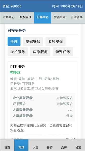 任務類型包含:基礎安保、專項安保、技術服務、應急服務以及特殊任務。