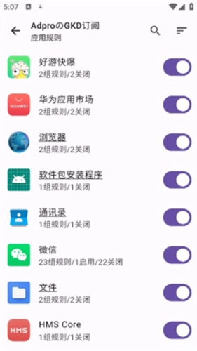 7、最后進(jìn)入應(yīng)用規(guī)則就可以查看跳過廣告的應(yīng)用。