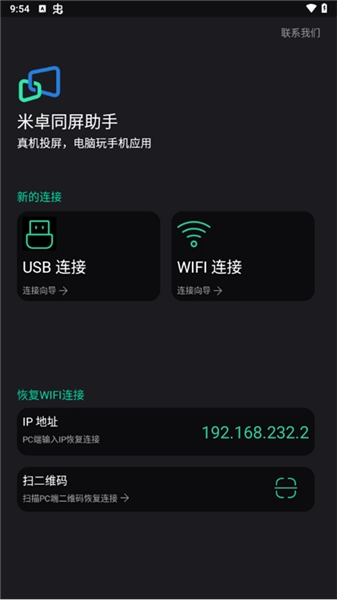 1、打開軟件,我們能夠看到一個簡潔清爽的操作界面并且在這里能夠為我們提供USB、WIFI等一系列連接方式。