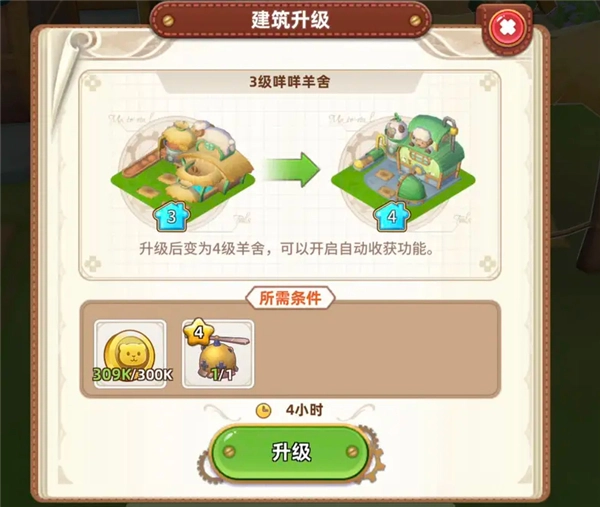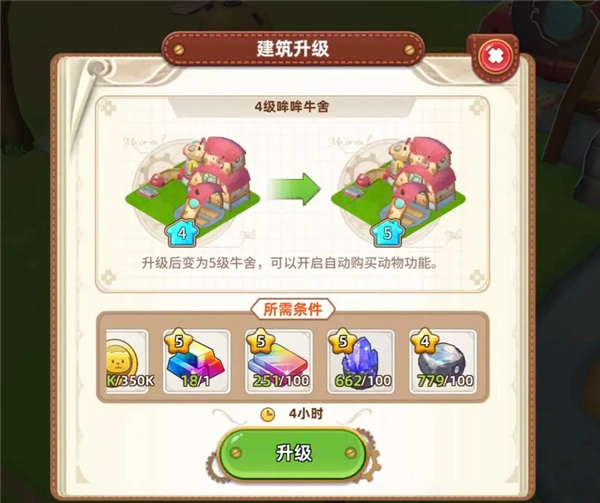 農舍3升4時,需要發(fā)明工坊4級,耗材: