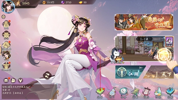 1. 開啟錦繡江湖,進入游戲大廳頁面,點擊頁面下方“俠客”圖標按鈕。