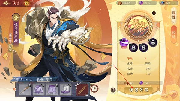 3、進入到俠客詳細信息頁面,最后點擊頁面上方的“俠客升級”按鈕即可。