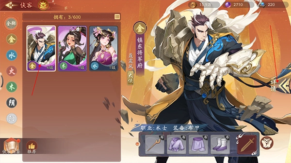 2、進入到所有俠客列表頁面,點擊需要升級的俠客,再點擊頁面右側的“詳情”按鈕;