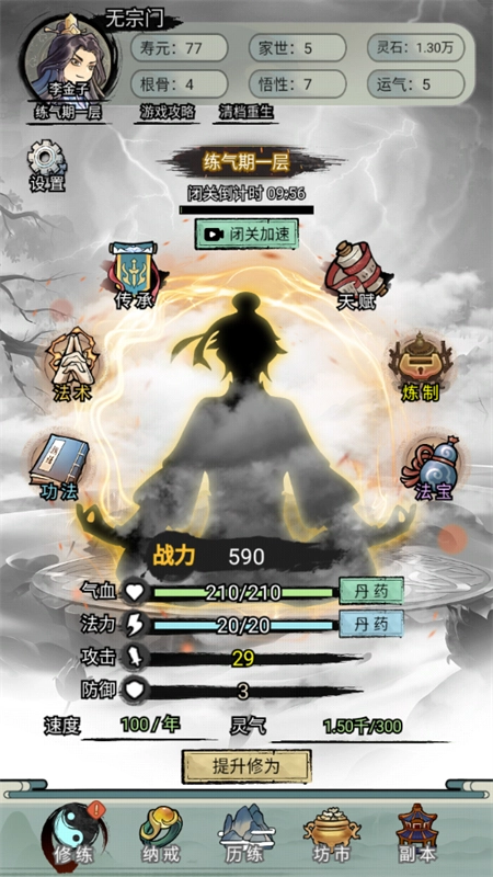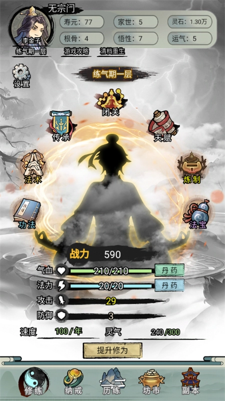 1、打開游戲,我們能夠看到一個非常真實的修仙過程。