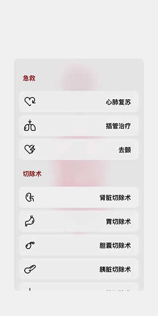 11、點(diǎn)擊右下角的手術(shù)刀圖標(biāo),可以為模型進(jìn)行相應(yīng)的治療措施,其中包括了急救術(shù)和切除術(shù)等。