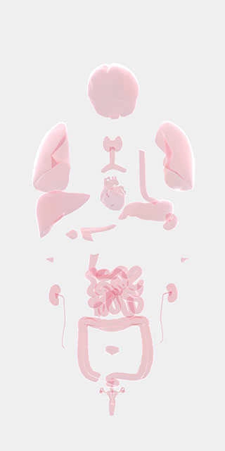 4、當(dāng)我們用手指朝著屏幕兩邊拖動時,人體器官會分開顯示,這種方式更便于我們查找相應(yīng)器官。而點(diǎn)擊屏幕中央,器官就會重新聚攏在一起。