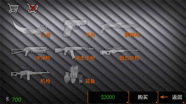 8、點擊購物車這里可以購買自己喜歡的槍支武器;