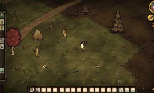 1、前期草、樹(shù)枝、木頭收集夠一組即可沿著大路探路,路上有燧石和石頭可以順便撿起,記得采集看見(jiàn)的漿果或一些蘿卜。