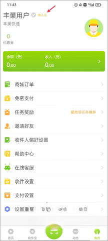 (1)打開軟件并注冊賬號,切換到【我的】界面,在這里可看到商城訂單、免密支付等功能選項,點擊上方的“待認(rèn)證”。