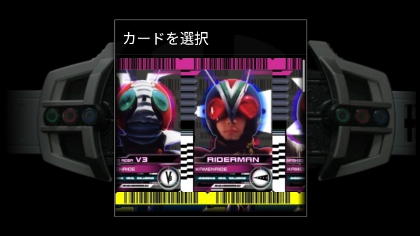 2、啟動機關(guān),出現(xiàn)騎士卡,左右滑動這個小窗口,可查看到電視劇中出現(xiàn)的所有騎士卡,選擇一張進行變身。