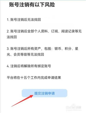 閱讀提示信息后,點(diǎn)擊“提交注銷申請”,等待系統(tǒng)處理即可。