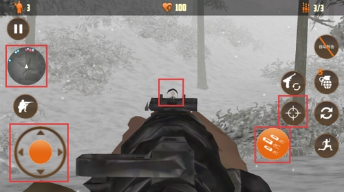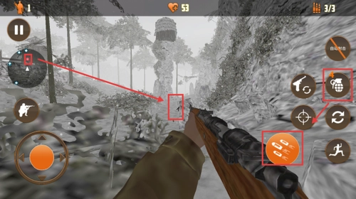 2、通過(guò)左側(cè)搖桿來(lái)操控角色的移動(dòng)方向,利用右側(cè)按鍵來(lái)更換不同倍數(shù)的瞄準(zhǔn)鏡,在對(duì)準(zhǔn)敵人之后進(jìn)行精確射擊,以此達(dá)成消滅敵人這一核心目標(biāo)。