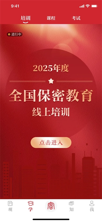 1、打開保密觀,在首頁點(diǎn)擊本年度全國保密教育線上培訓(xùn)的入口界面。若該培訓(xùn)已結(jié)束,系統(tǒng)會(huì)提示用戶培訓(xùn)已結(jié)束。參考往年情況,歷年全國保密教育線上培訓(xùn)的時(shí)間通常集中在5月至9月期間。