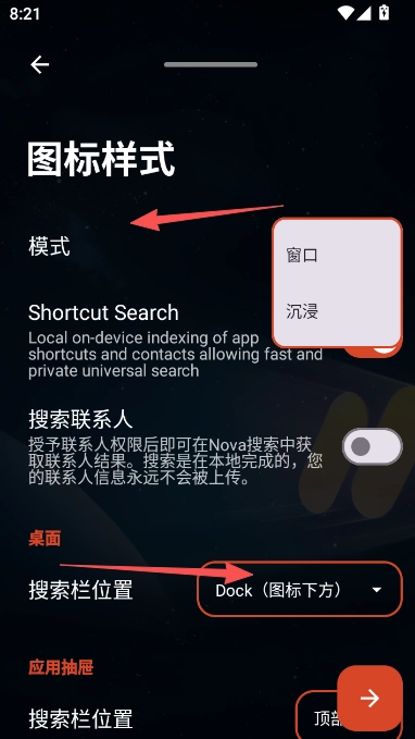 2、在圖標(biāo)樣式欄中對主題圖標(biāo)的模式、搜索欄位置以及應(yīng)用抽屜位置進行布局設(shè)置。