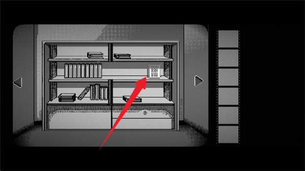 2.在書館場景中,點(diǎn)擊書架上的特殊物品(如箭頭指向的區(qū)域),獲取關(guān)鍵道具或線索,推進(jìn)游戲進(jìn)程。