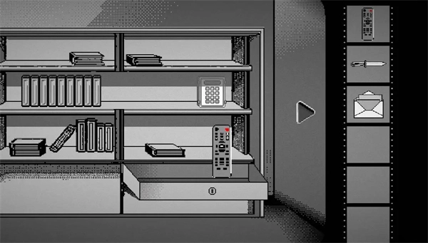 1、進(jìn)入游戲后點(diǎn)擊柜子上的書本,讓所有書本浮起,獲取鑰匙,然后用鑰匙開啟柜子,獲得遙控器,小刀,信。