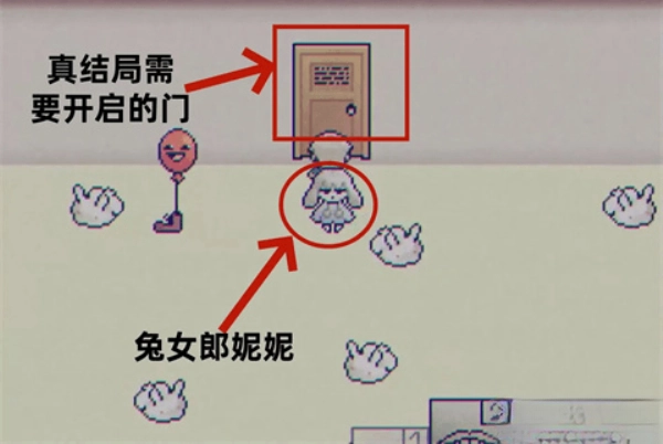 2. 完成上述步驟后,你會看到妮妮身后出現(xiàn)了一扇門,這便是通往結(jié)局三(也就是真結(jié)局)的路徑。