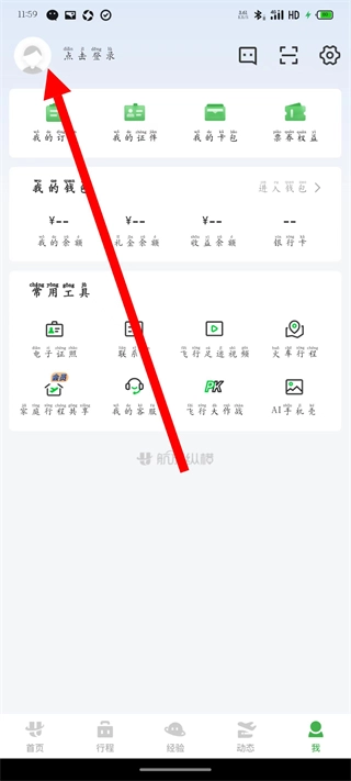 1、啟動航旅縱橫應用,點擊底部導航欄中的“我的”選項,即可進入個人中心頁面。